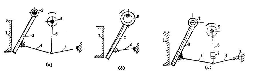 (a)-簡擺鄂式破碎機;(b)-復擺鄂式破碎機;(c)-液壓鄂式破碎機