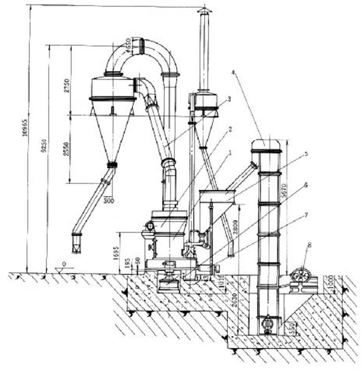(6)起動(dòng)雷蒙磨,經(jīng)傳動(dòng)裝置帶動(dòng)梅花架上的磨輥裝置,繞中心軸轉(zhuǎn)動(dòng),進(jìn)入粉磨過(guò)程。